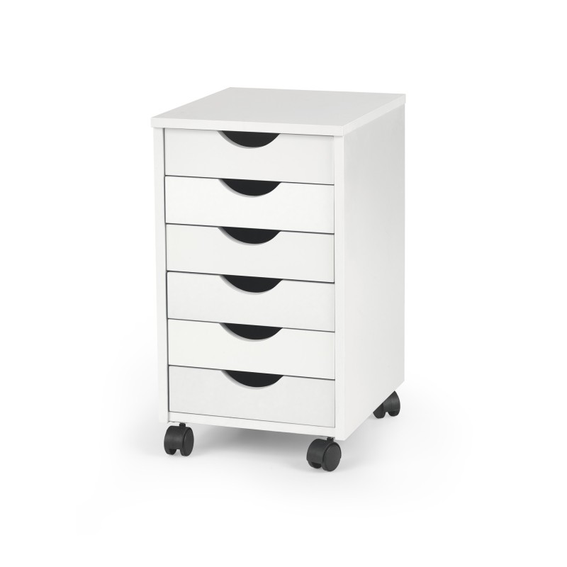 Wykonany z wysokiej jakości MDF lakierowanego oraz płyty meblowej laminowanej, kontenerek łączy w sobie trwałość i estetykę. Gładka, biała powierzchnia nadaje mu nowoczesny charakter, a jednocześnie sprawia, że jest łatwy do utrzymania w czystości.